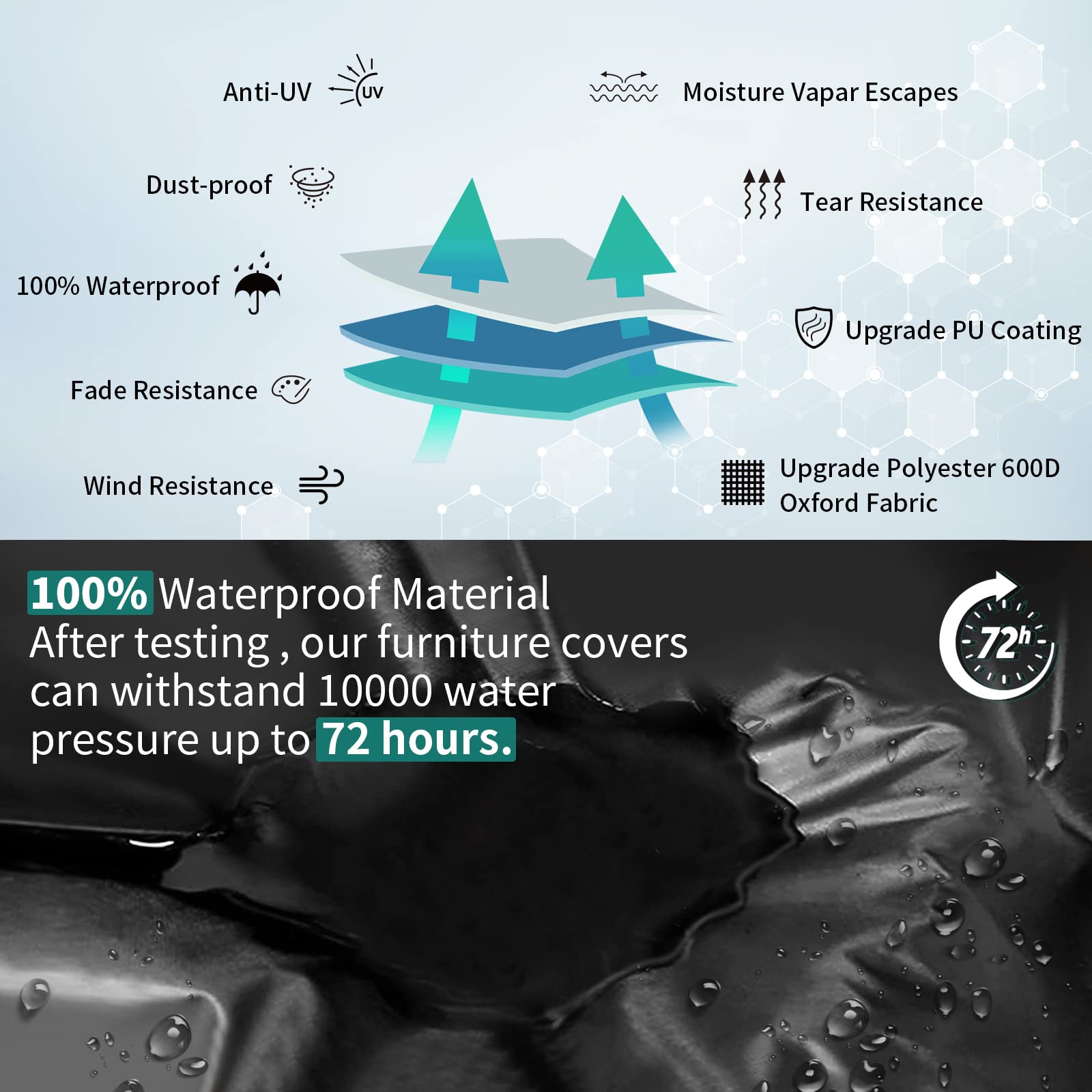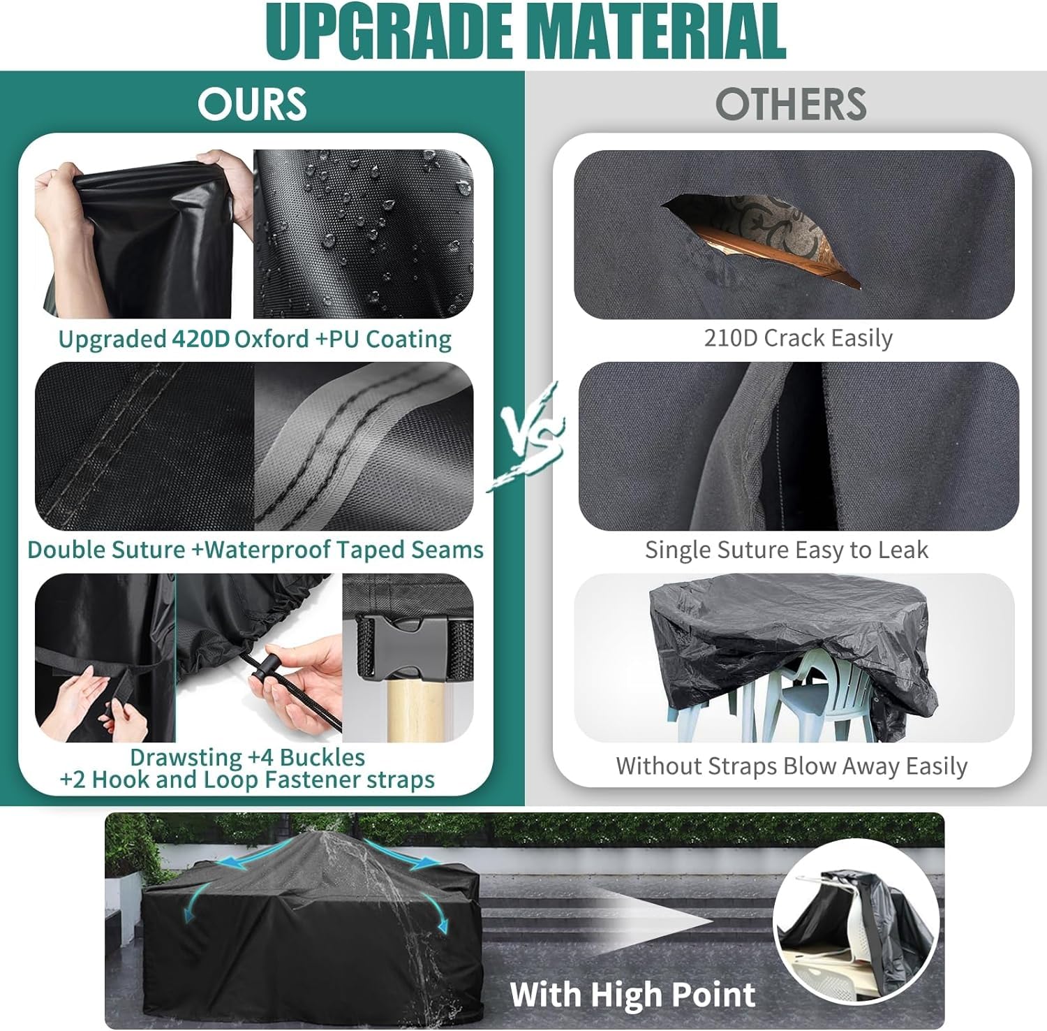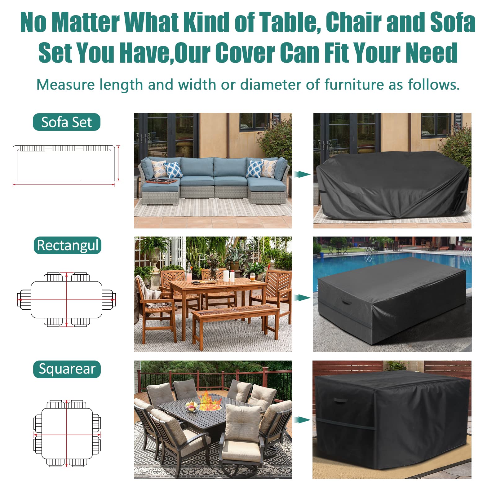 - ✔【WASSERDICHTE VERSION AUS VERBESSERTEM MATERIAL】: Durch die Kombination des Feedbacks unserer Kunden zu Verbesserungen seit Dezember 2020 wurde eine hochwertige Gartenmöbelabdeckung mit fest genähtem, verbessertem Material und PU-Beschichtung entwickelt, um einen vollständigen Schutz für Ihre Möbel zu bieten.