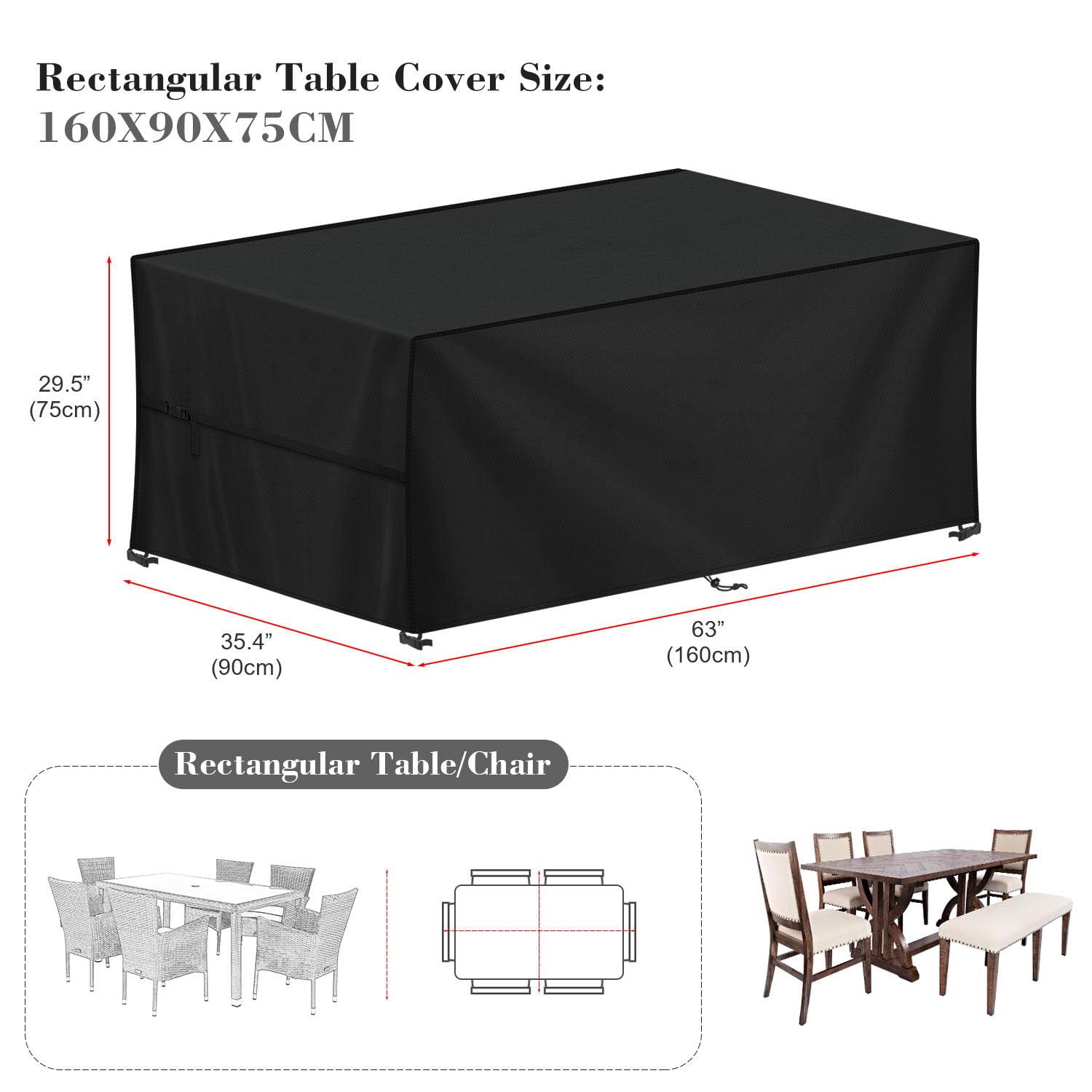 - 【Mehrere Größen verfügbar】Diese rechteckige outdoor gartentisch schutzhülle ist 160x90x75cm groß, geeignet für die meisten Arten von Innen-/Außenmöbeln, Bistrotisch und Stühle, Esszimmergarnitur, Couchtisch, Bänke und Sofa im Rechteck. Wir haben verschiedene Größen von gartenmöbel abdeckhauben, um Ihren Bedürfnissen gerecht zu werden, bitte messen Sie die Abmessungen Ihres Möbelsets vor dem Kauf, insbesondere die Tiefe der Stühle.