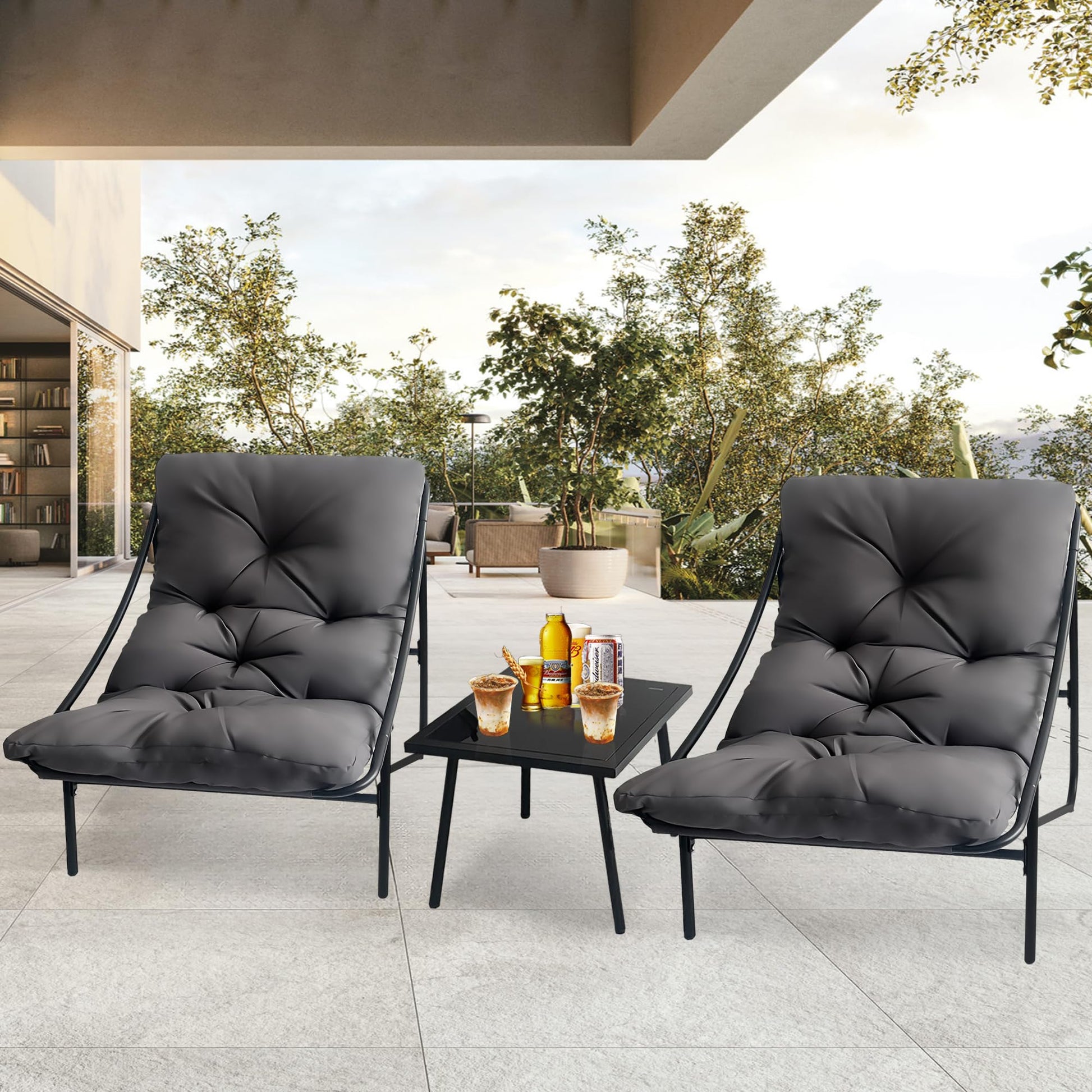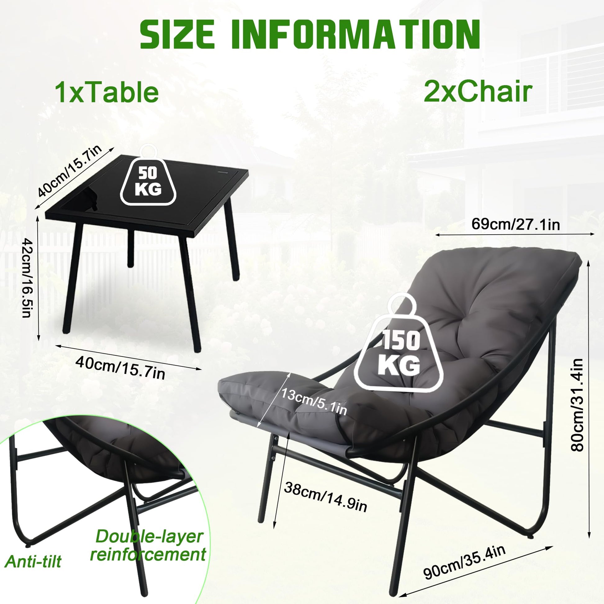 - 【Extrem stabile Konstruktion】: Dieses dreiteilige balkonmöbel set 3 teilig (2 Stühle und 1 Tisch) verfügt über einen hochwertigen, verstärkten Stahlrahmen und 5 mm dickes, gehärtetes Glas für höchste Stabilität. Dieses balkonset 3 teilig ist bis zu 150 kg belastbar und somit für viele Personen geeignet. Es sieht auch nach acht bis zehn Jahren noch wie neu aus.