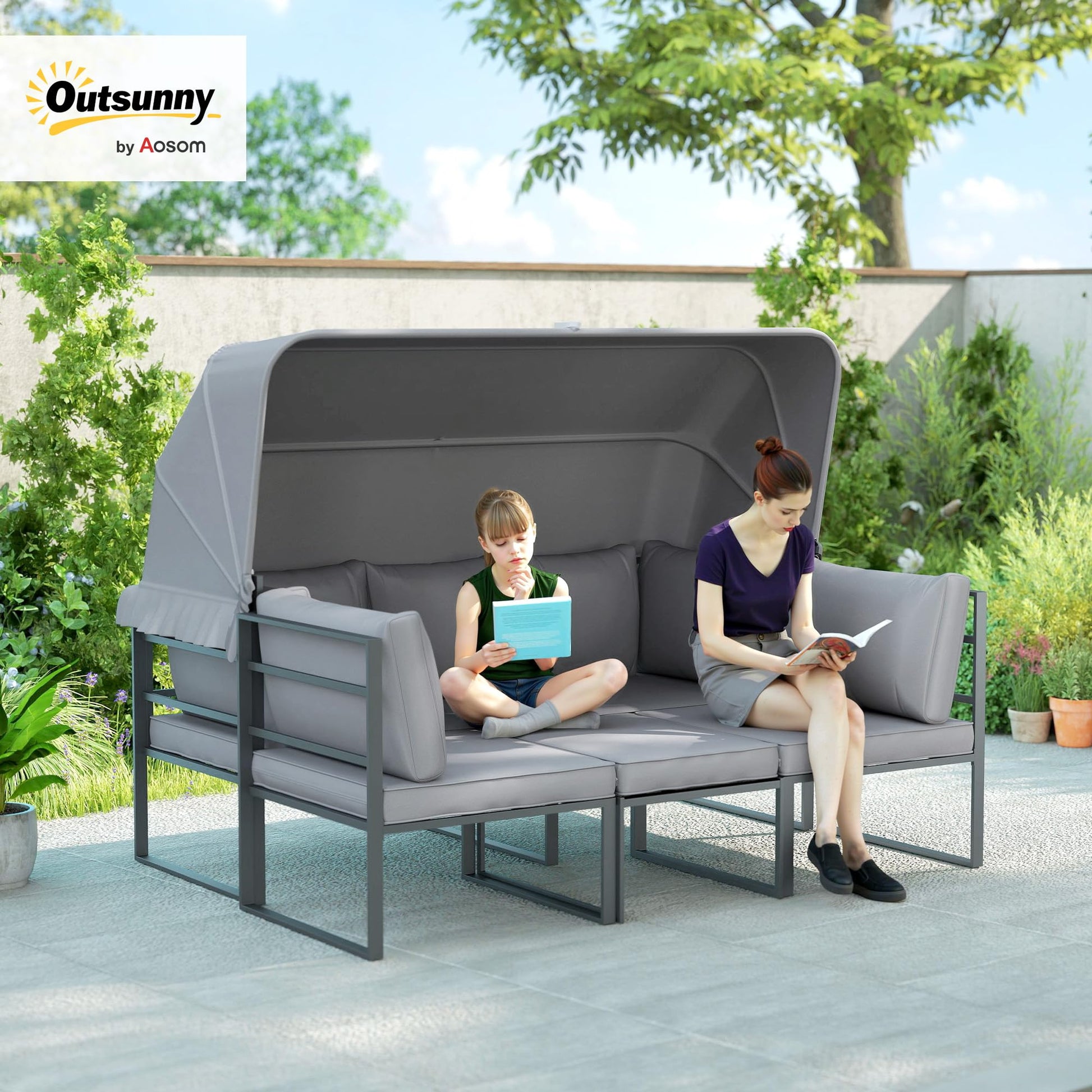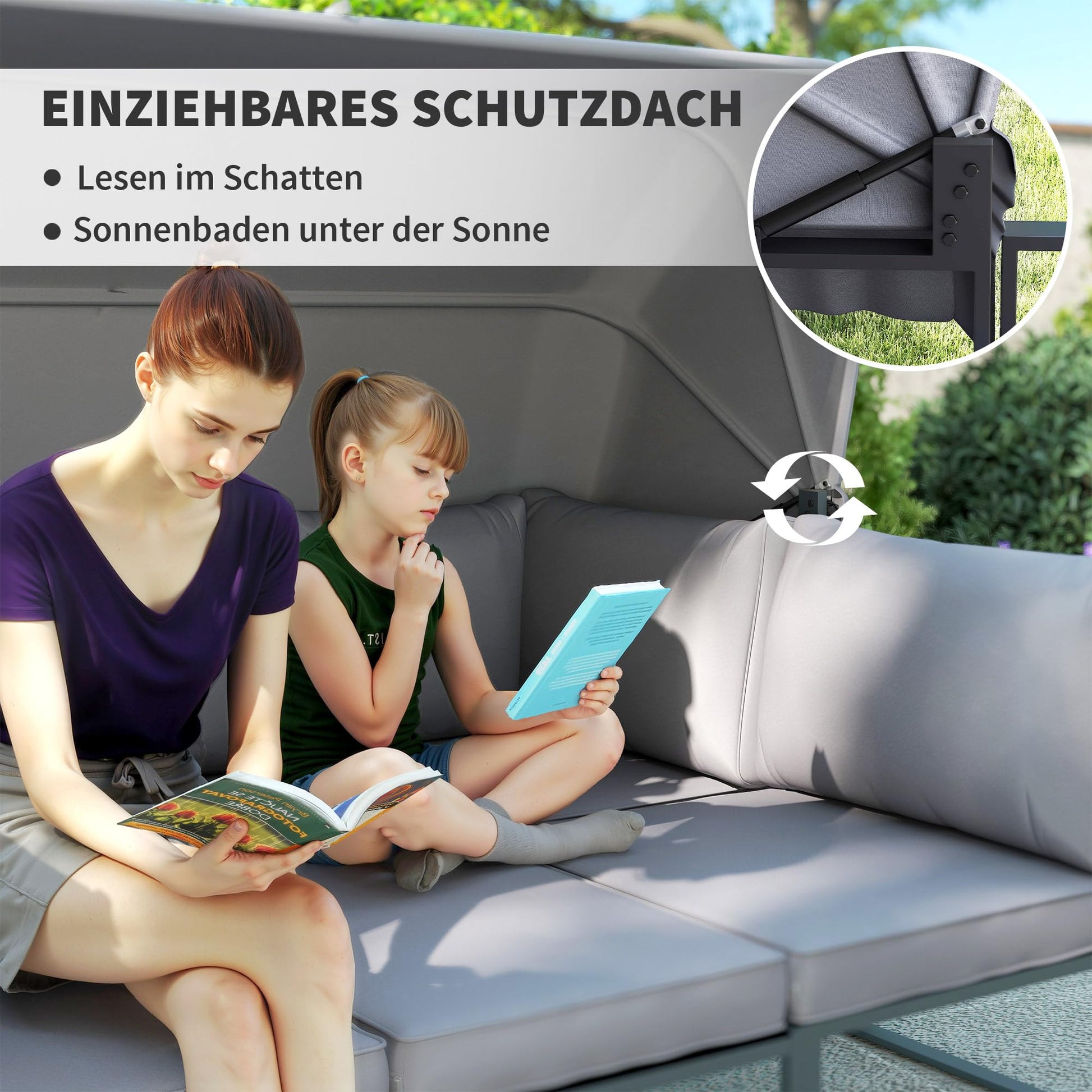 - Flexibles 4-teiliges Balkonmöbel-Set: Dieses Gartenmöbel-Set besteht aus einem 3-Sitzer-Sofa mit Baldachin, zwei Stühlen und einem Couchtisch – ideal als Tagesbett oder Lounge für bis zu fünf Personen
