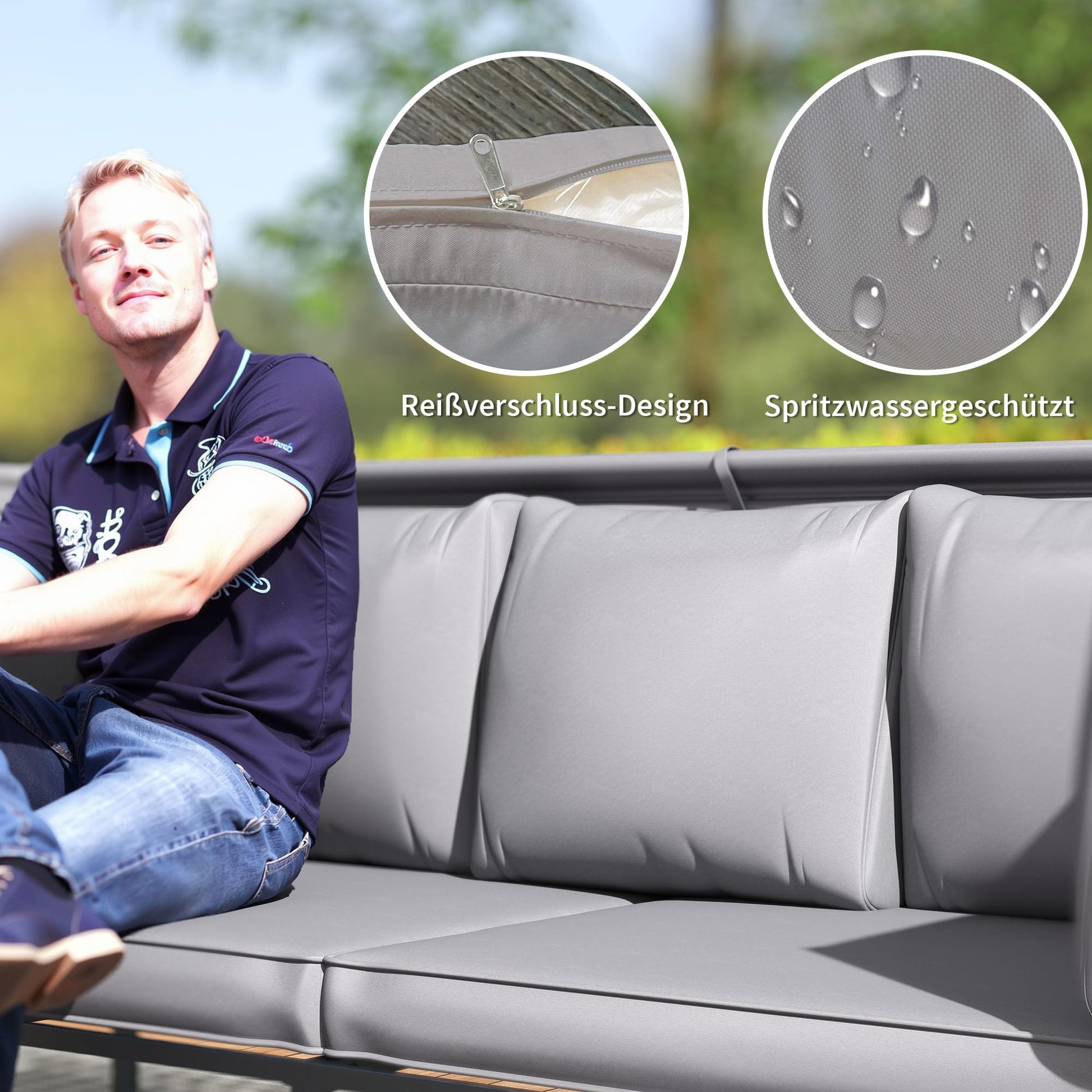 - Maximaler Komfort für draußen: Die tiefen Sitze und weichen Kissen der Gartengarnitur bieten entspanntes Sitzen, während abnehmbare Bezüge das Reinigen erleichtern