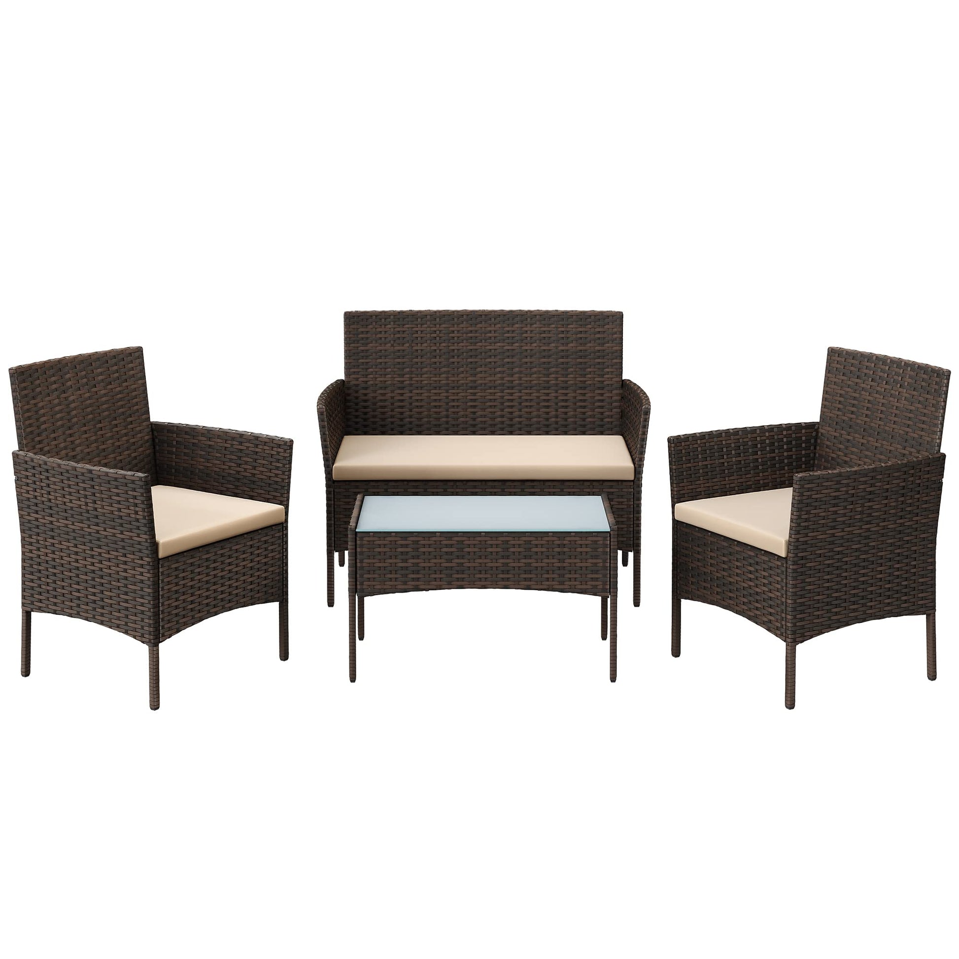 - [Komfort muss sein] Setzen Sie sich auf diese Gartenmöbel, gepolstert mit 5 cm dicken Sitzkissen, lehnen Sie sich zurück und genießen Sie die Natur! Die abnehmbaren Kissenbezüge und die Tischplatte aus Glas sind außerdem leicht zu reinigen