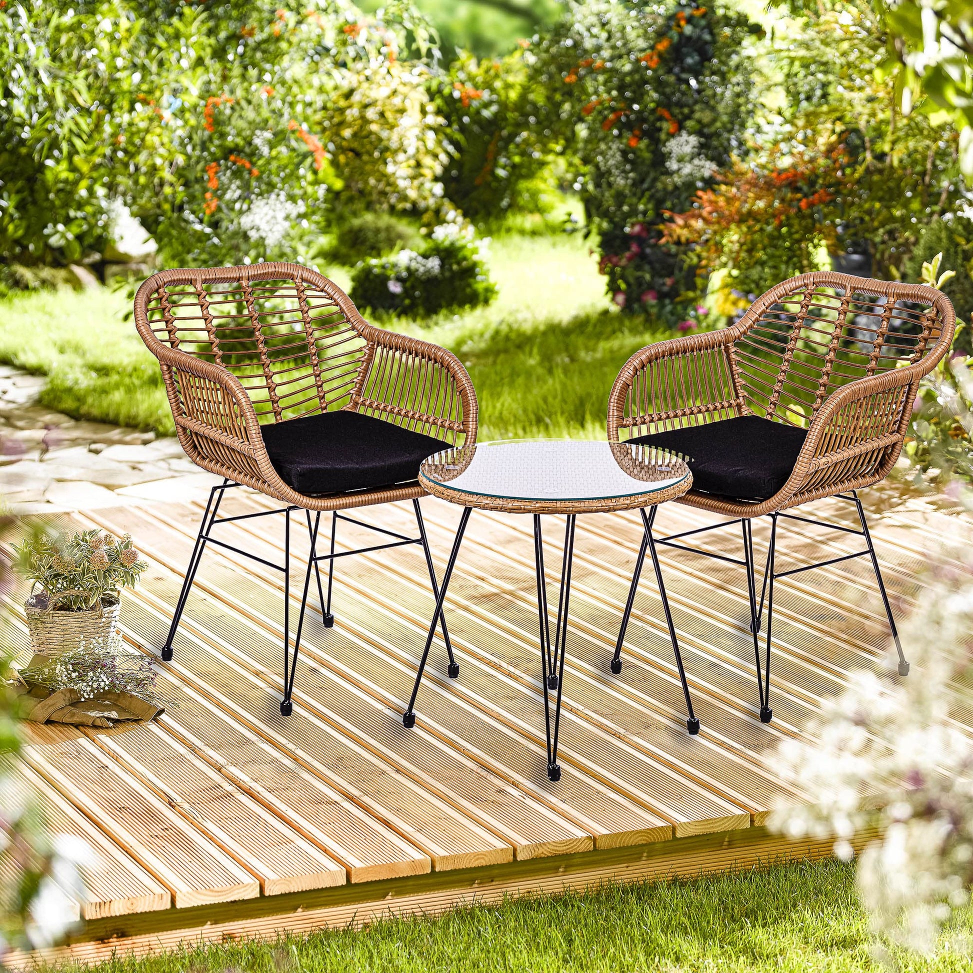 - Das Bistro-Set besteht aus 2 Loungesesseln und einem runden Tisch und verleiht ein echtes Urlaubsfeeling in Ihrem Garten, auf Ihrem Balkon oder Ihrer Terrasse